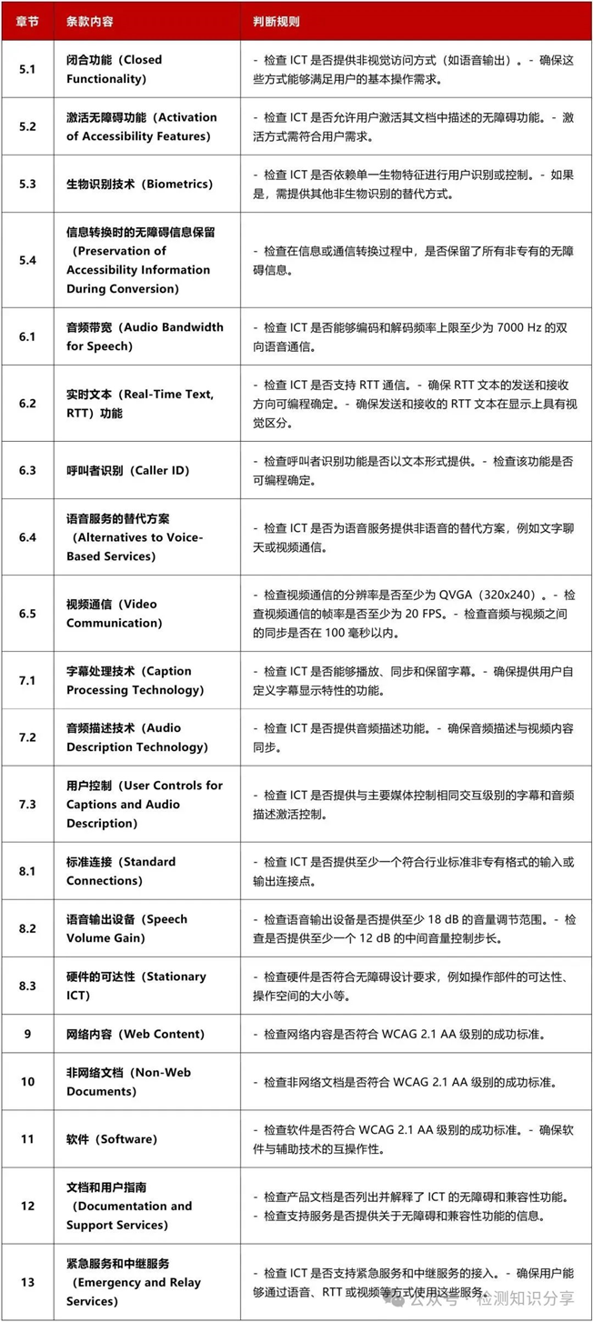 作为EAA的核心技术依据,EN 301 549 V3.2.1(2021版)为信息通信技术产品设定了系统的无障碍标准,覆盖硬件、软件、文档等全维度要求。